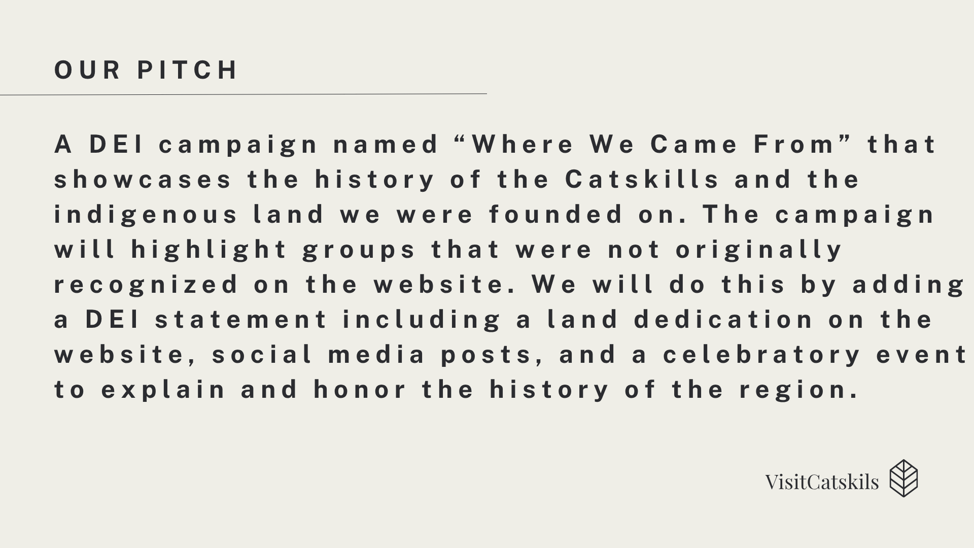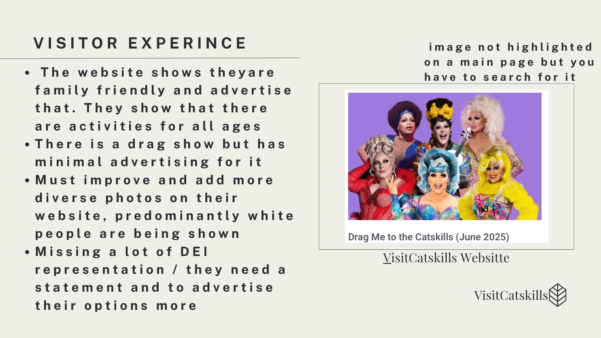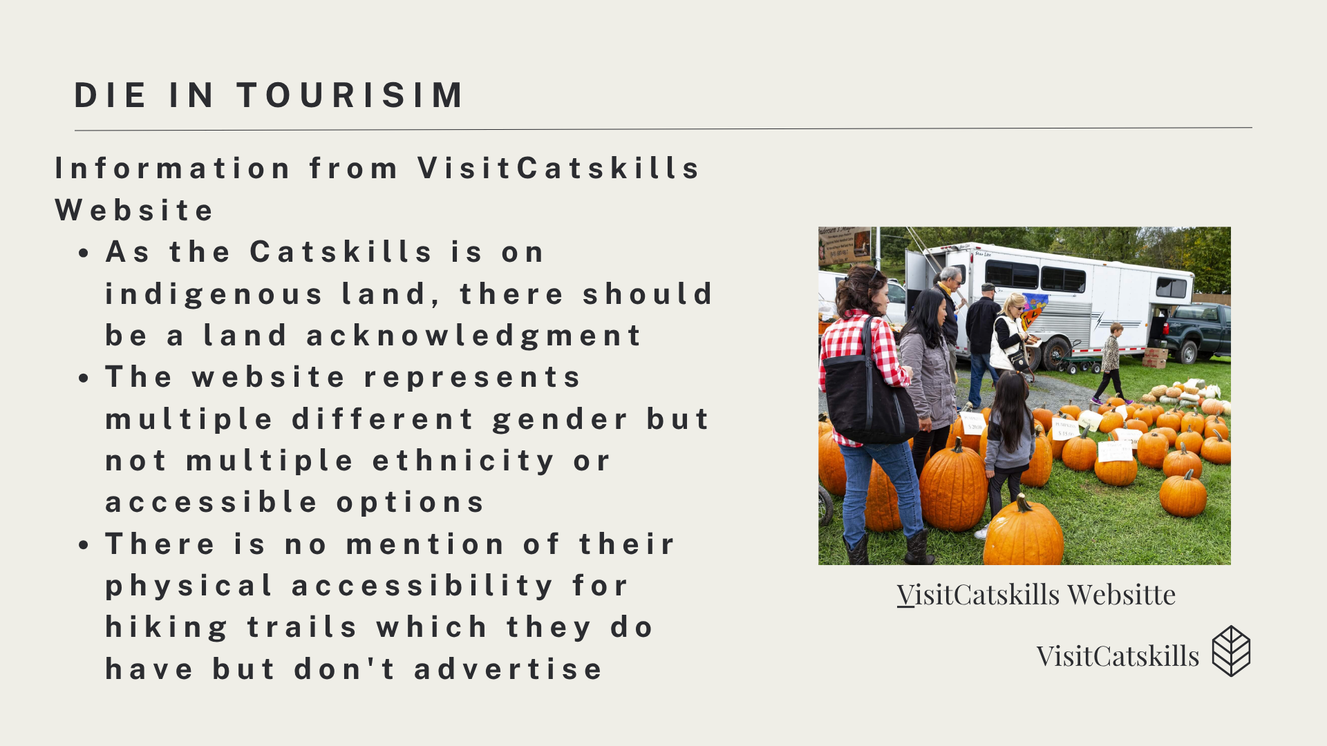 Here is a presentation on Diversity, Equity, and Inclusion in the Catskills based on the visitcatskills website. This was done in my PR writing class.